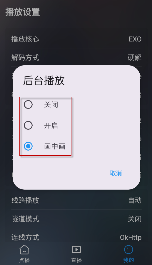 4¡¢×îºóÑ¡ÔñÏëҪʹÓõĺǫ́²¥·Åģʽ¼´¿É¡£