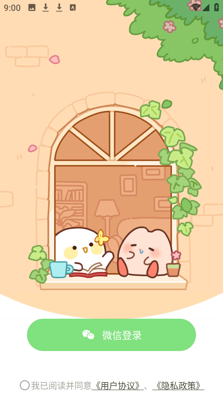 3、登录完成后就可以领养小宠物、,添加心情记录了、。
