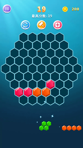 5¡¢Áù±ßÐÎÏû³ý£ºÍæ·¨½ÏÖ®¾µäÊý¶ÀÓÎÏ·¸ü×ÔÓÉ£¬ºá¡¢×óб¡¢ÓÒб¶¼¿ÉÏû³ýµÃ·Ö£¬Í¬ÑùÊDZ¸Ñ¡·½¿éÎÞ·¨·ÅÖÃʱÏû³ýÓÎÏ·½áÊø¡£