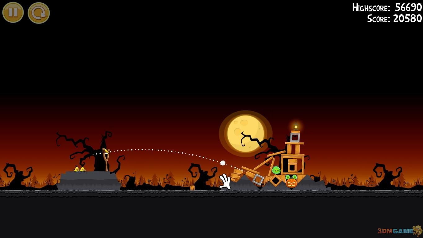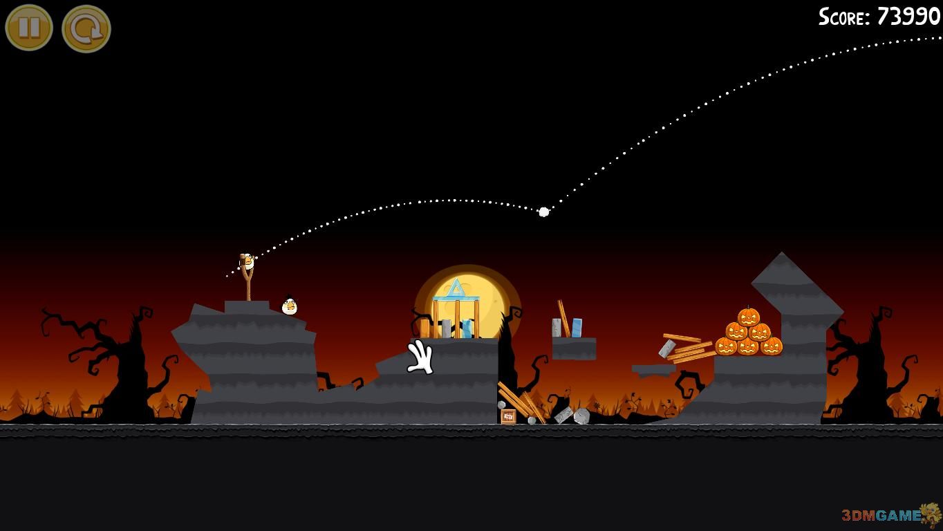 1-6:第一只鸟朝图中轨迹位置,击中左下角,干掉一个南瓜头,第二只鸟同样以一定角度斜插南瓜位置,(三星绝对拼人品,重复尝试了70多篇啊,苦逼有木有啊)