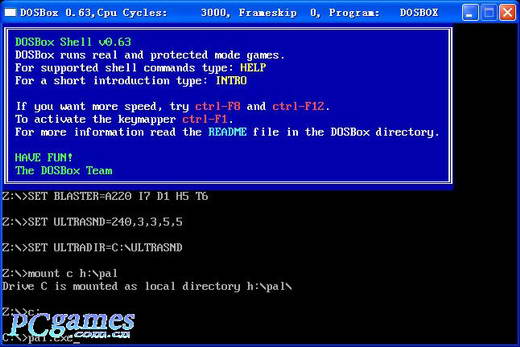 4。键入 c: 进入 C 盘,键入 pal.exe 即可进入游戏,如下图:
